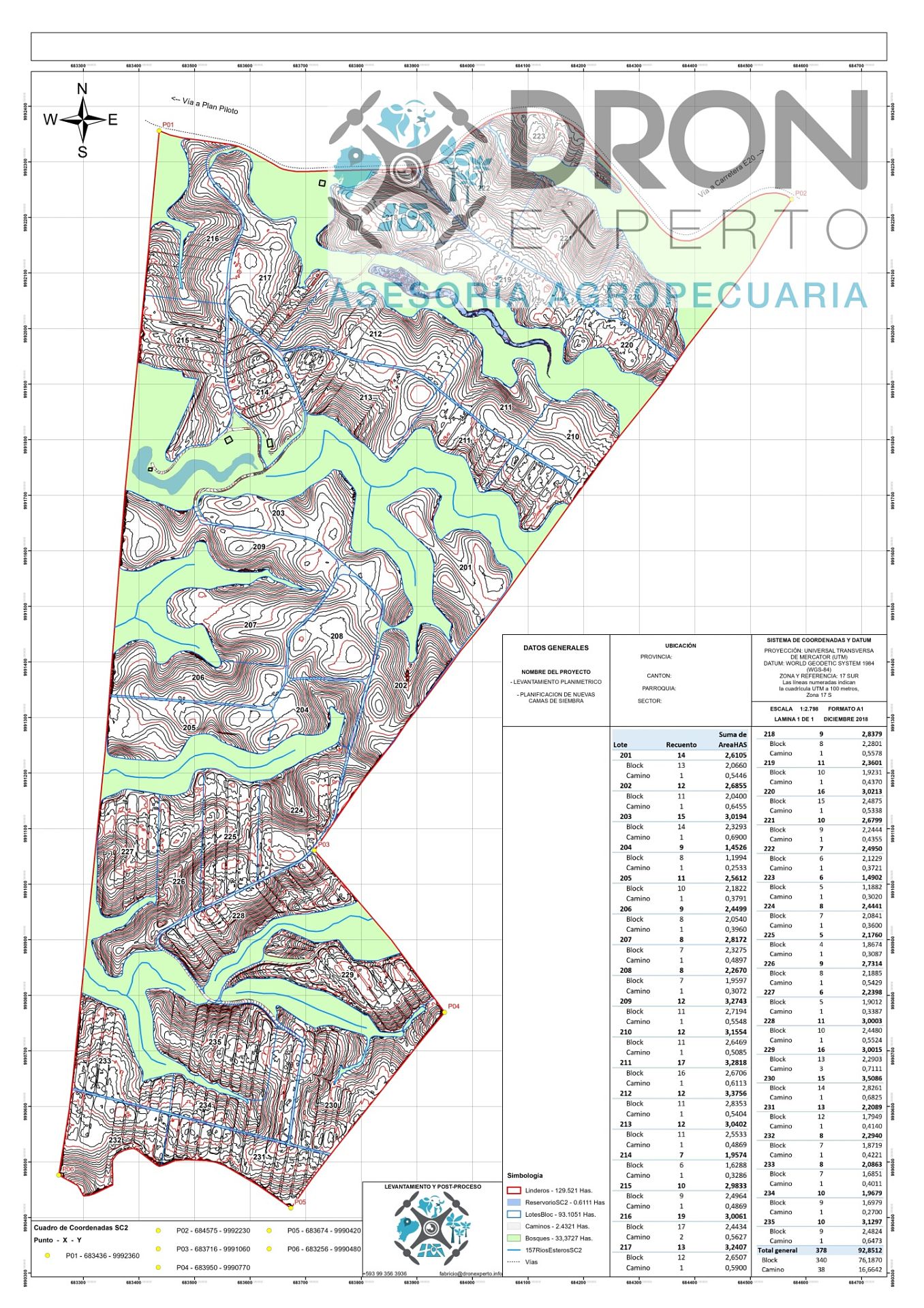 Planificación de nuevas camas de siembra de piña basado en curvas de nivel